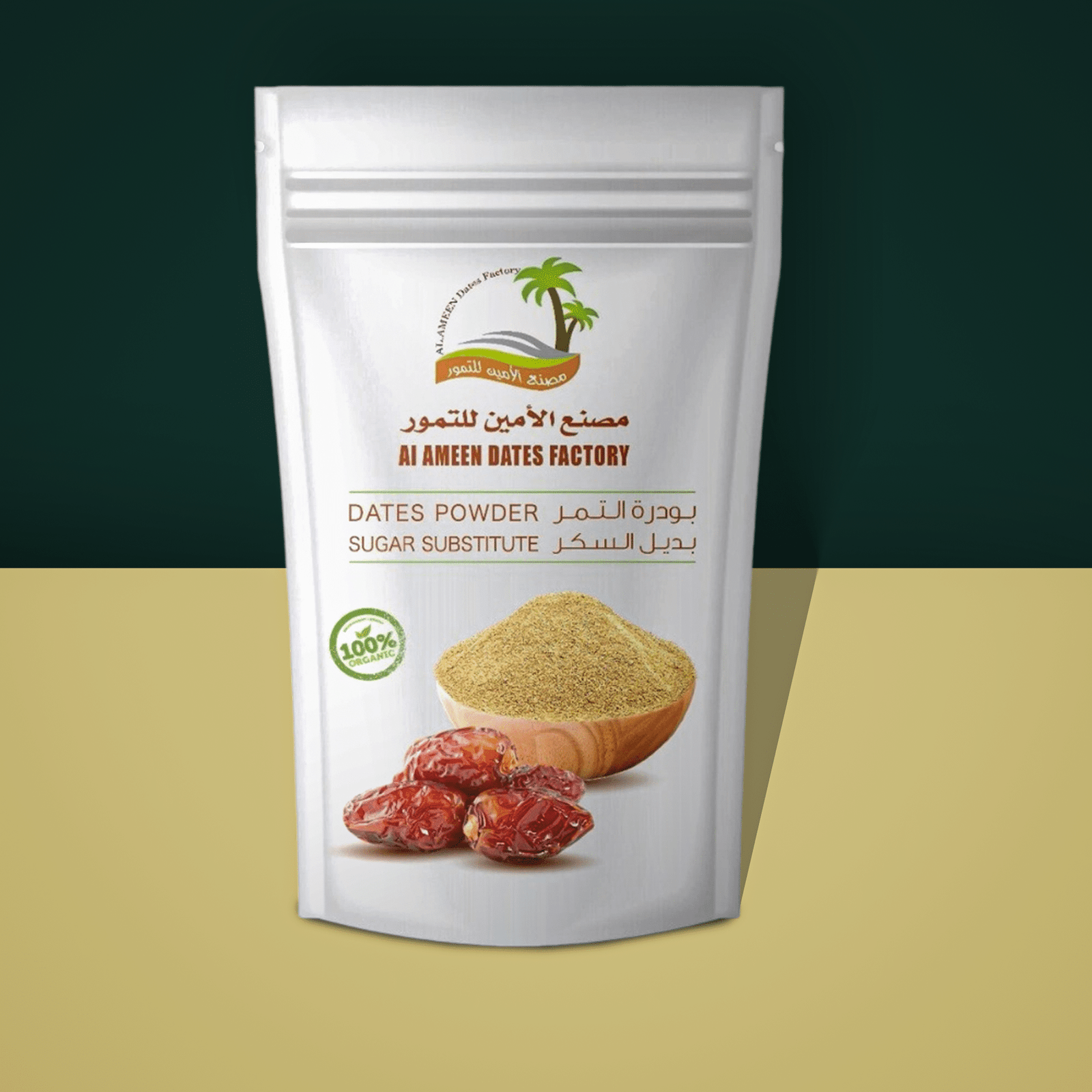 منتج “بودرة التمر (بديل السكر الصحي)” من شركة الأمين للتمور مصر، محلي طبيعي 100% مصنوع من تمر سعودي فاخر، بديل صحي وآمن للسكر الأبيض في الطهي والمشروبات.